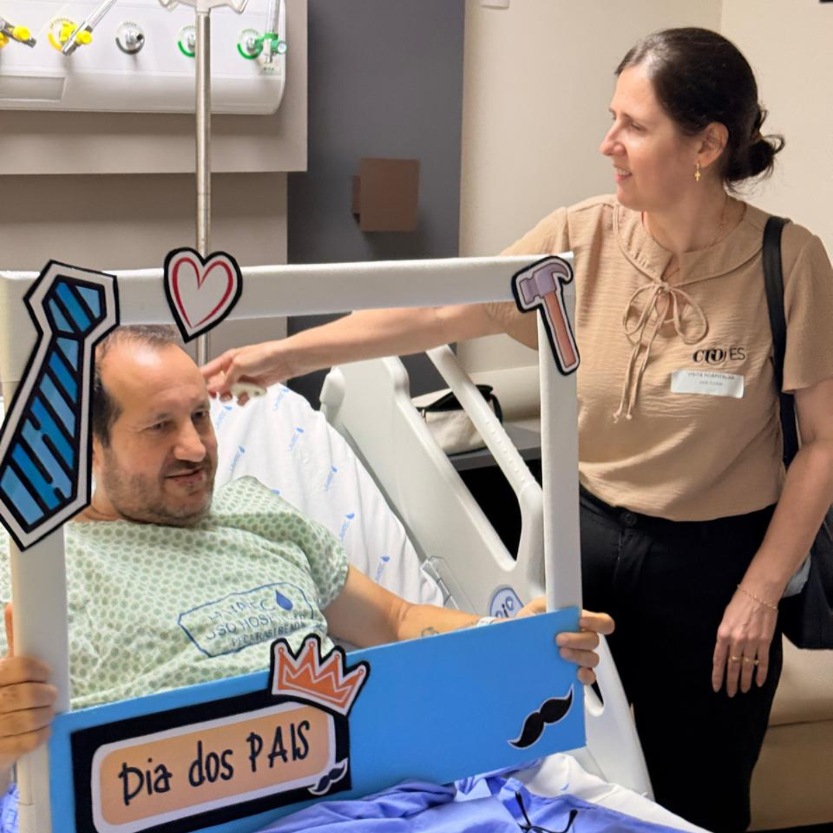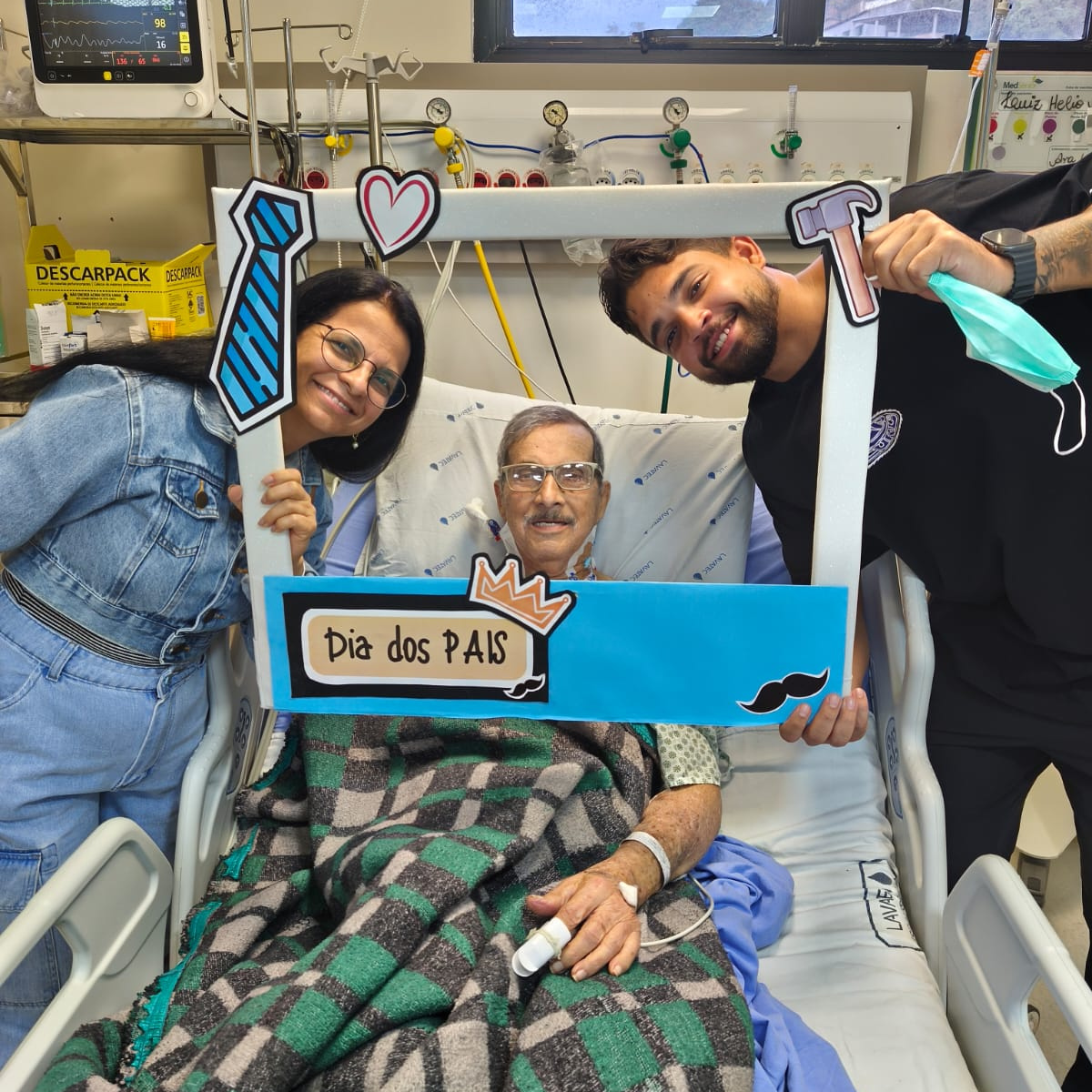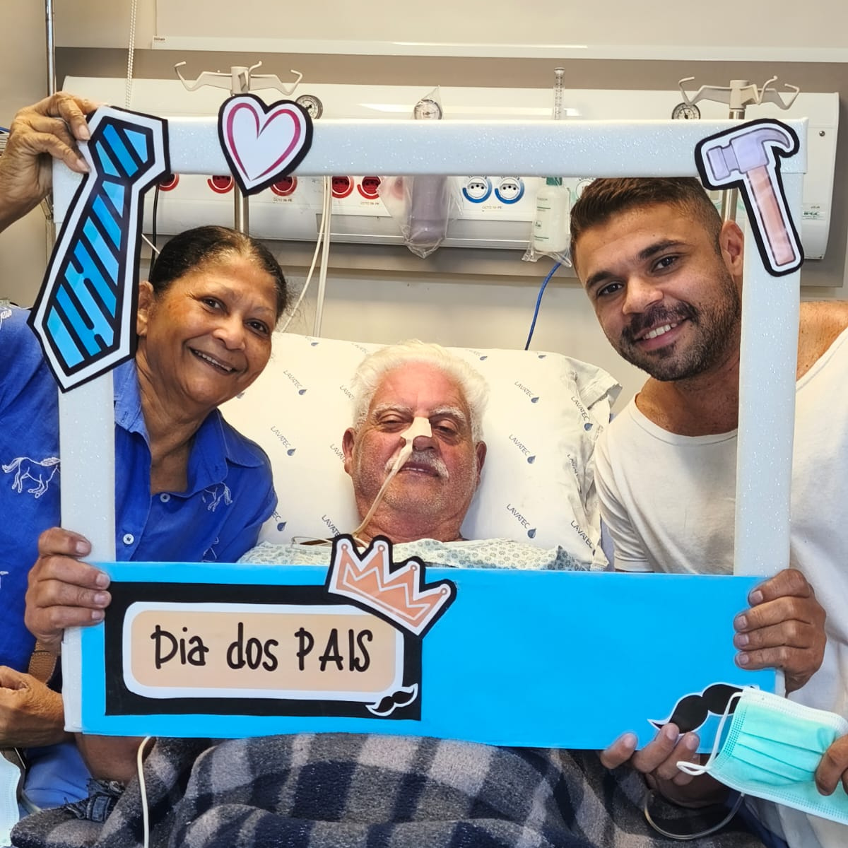 Os pacientes do Hospital MedSênior comemoram o Dia dos Pais com uma ação especial pensada pelo Grupo de Humanização da unidade, com objetivo de oferecer um ambiente mais acolhedor em uma data tão especial, proporcionando conforto e afeto aos pais internados, além de fortalecer os vínculos entre pais e filhos.